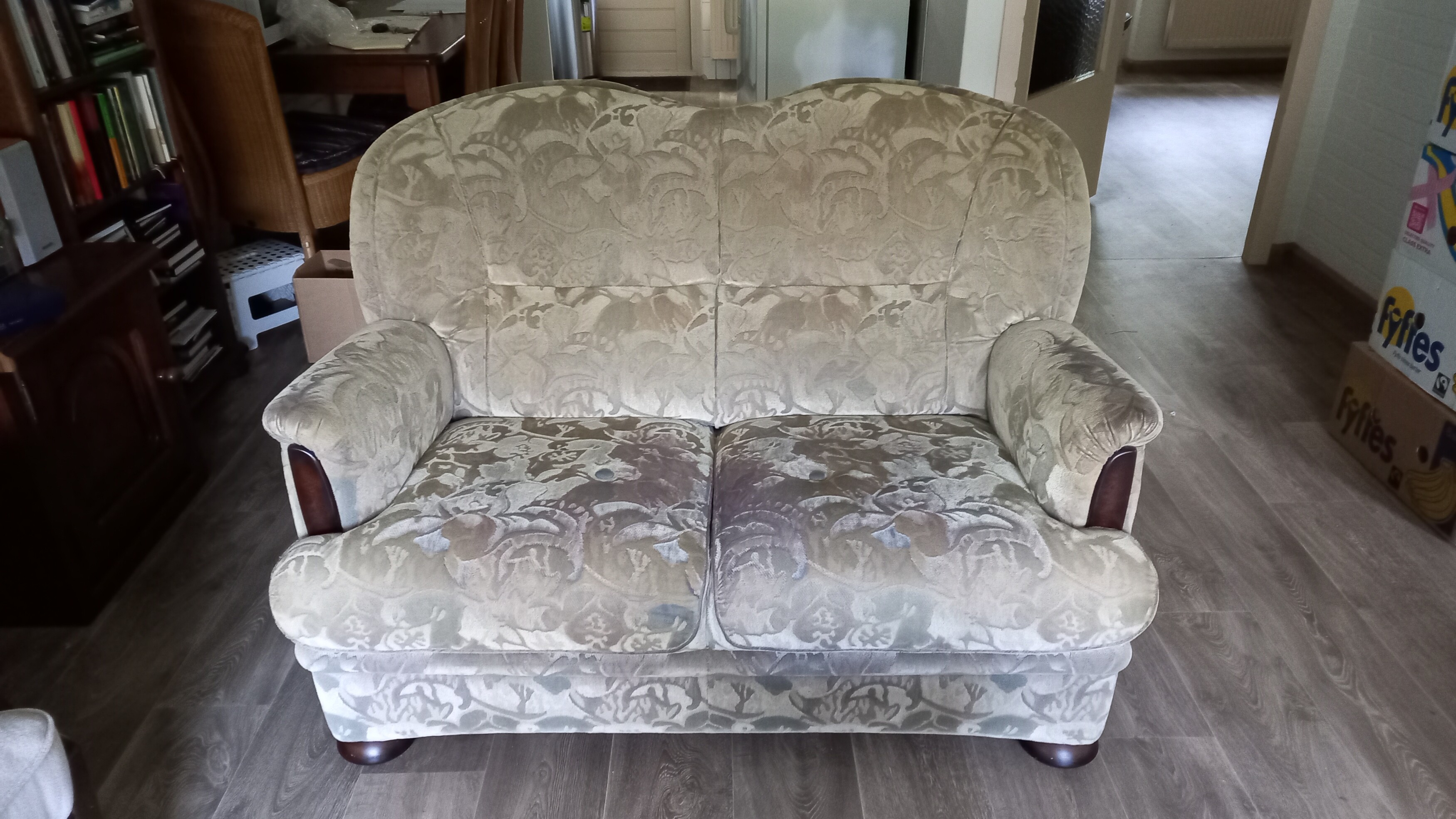 2 zits, bankje met bloemmotief.
