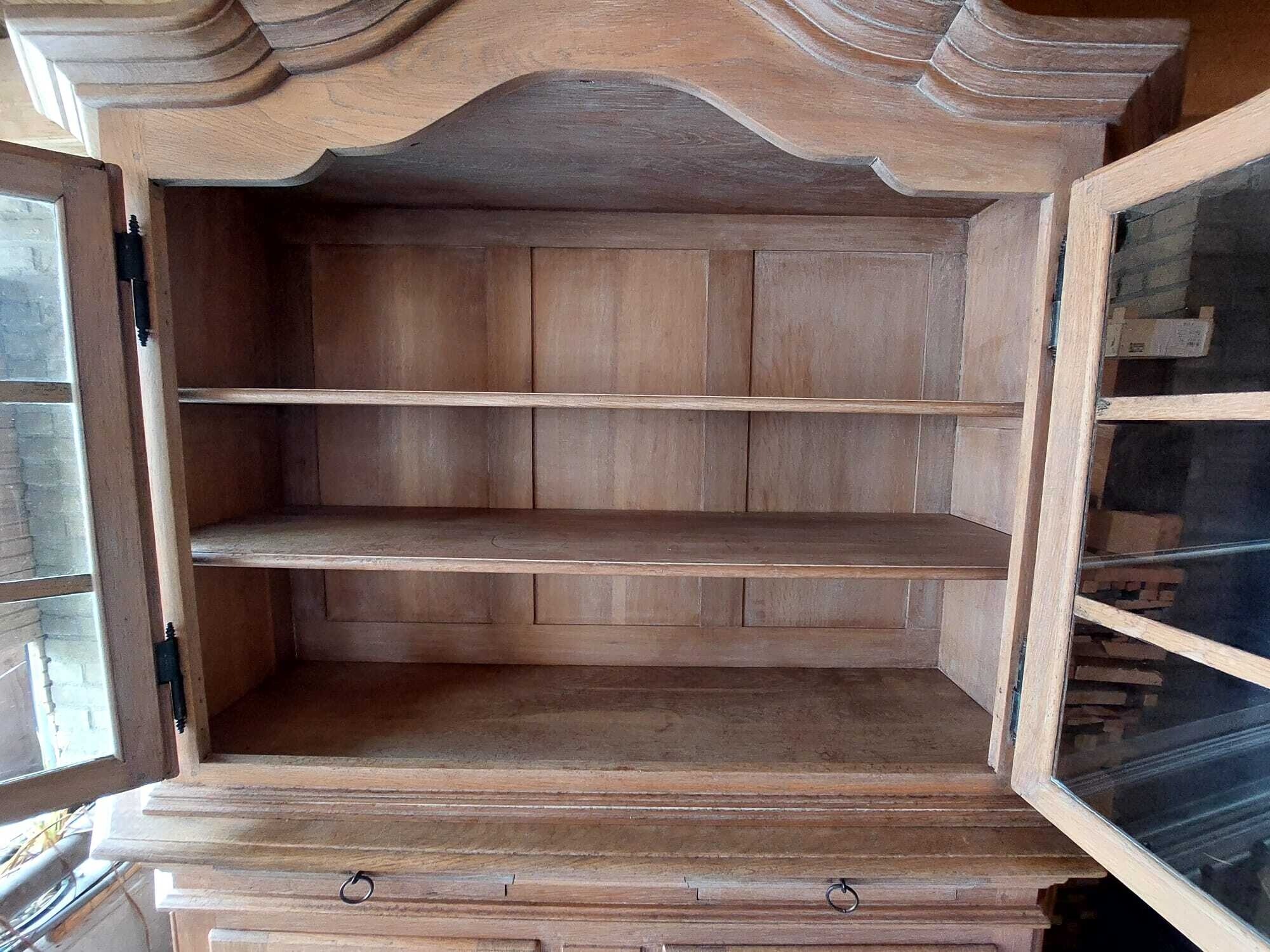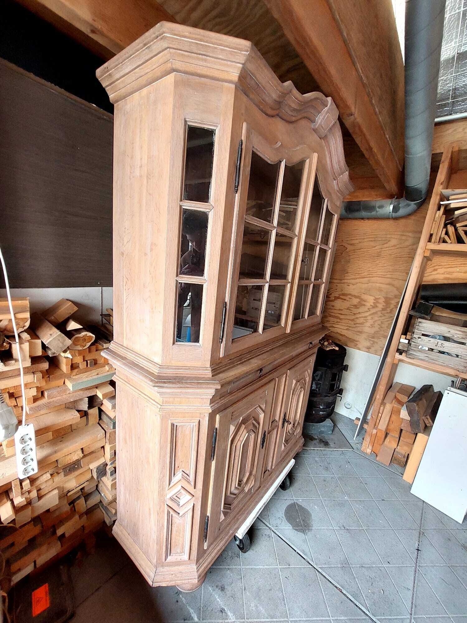 Net opgeschuurde 2-delige, massief eiken, buffetkast. Top kwaliteit!