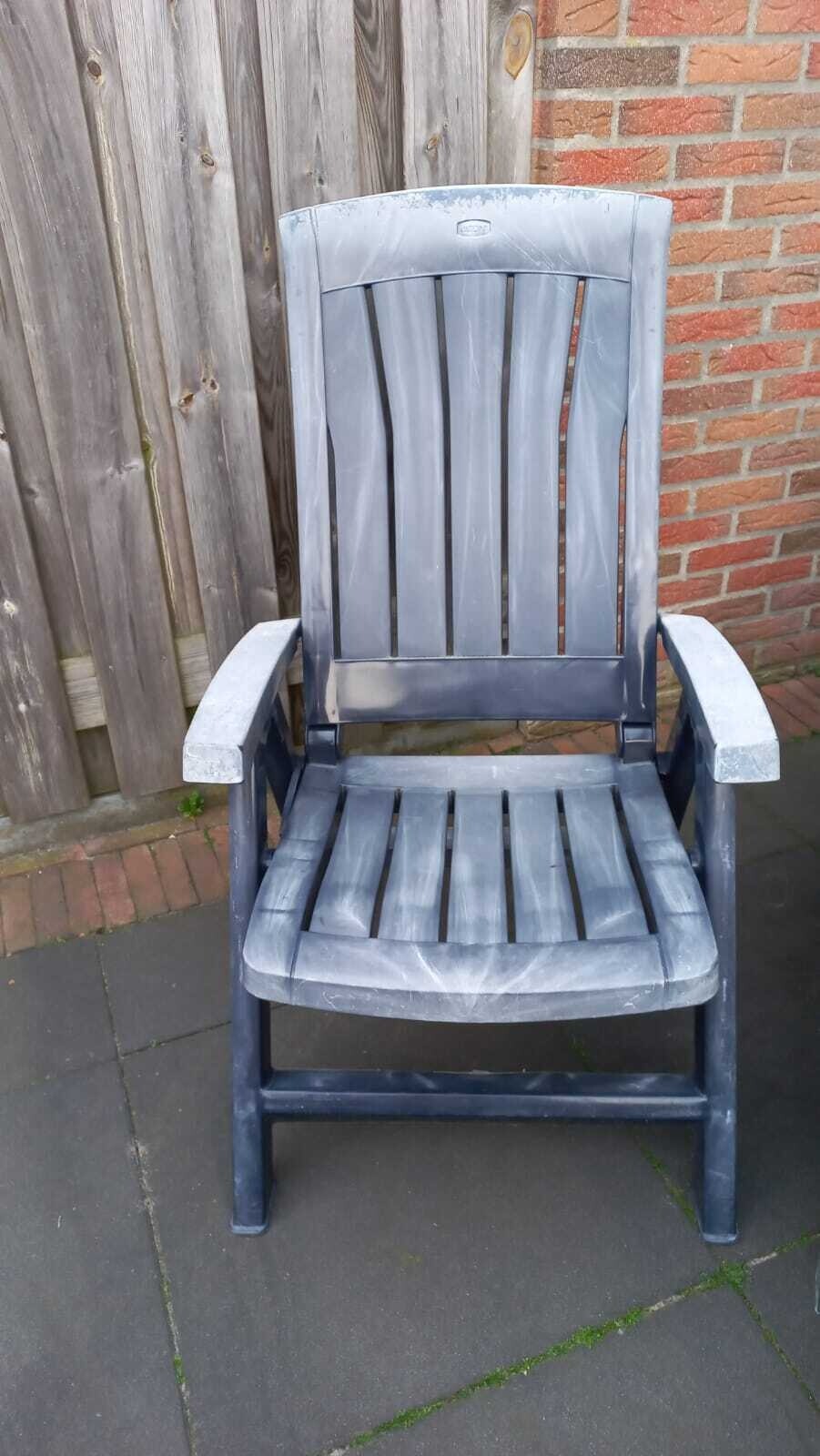 Een set van 4 tuinstoelen van het merk Jardin. Deze stoelen hebben mogelijkheid tot het verzetten van de rugleining in 4 standen.