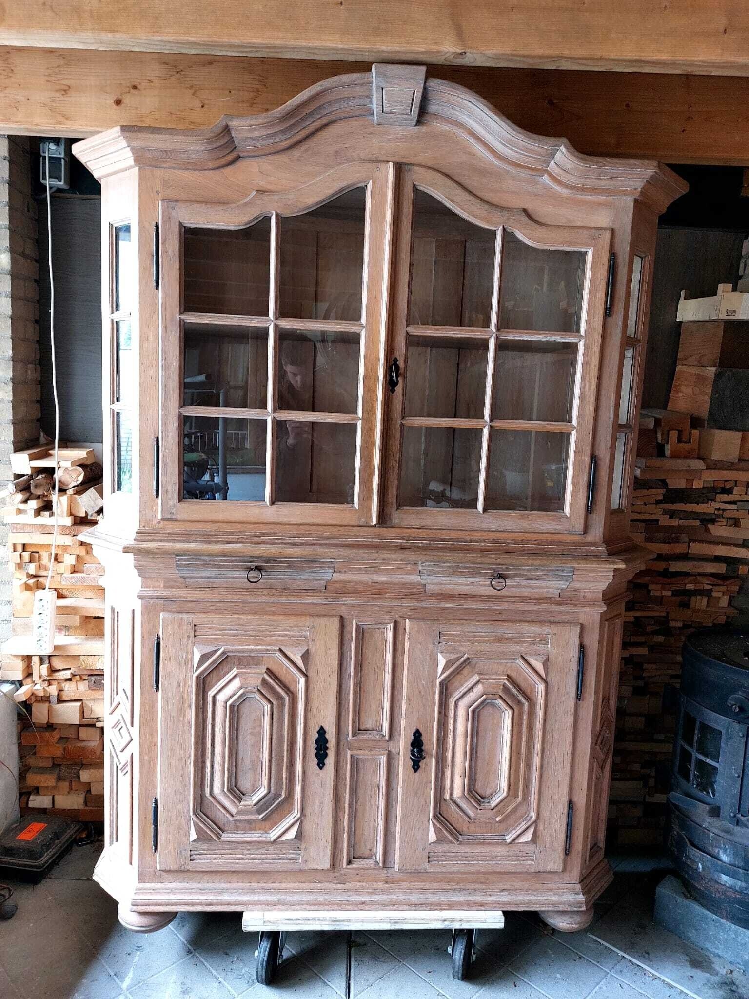 Net opgeschuurde 2-delige, massief eiken, buffetkast. Top kwaliteit!